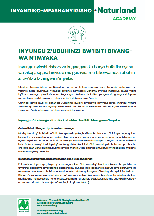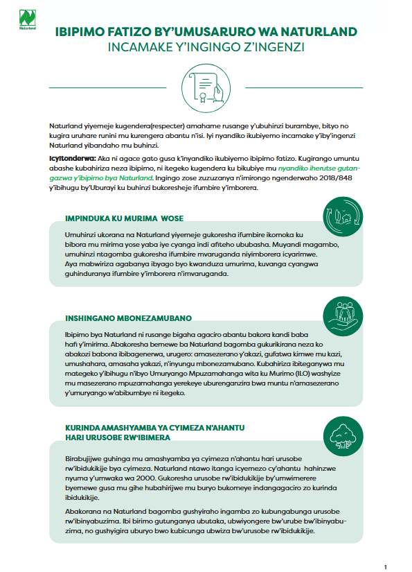 Naturland yiyemeje kugendera(respecter) amahame rusange y’ubuhinzi burambye, bityo no kugira uruhare runini mu kurengera abantu n’isi. Iyi nyandiko ikubiyemo incamake y’iby‘ingenzi Naturland yibandaho mu buhinzi.-